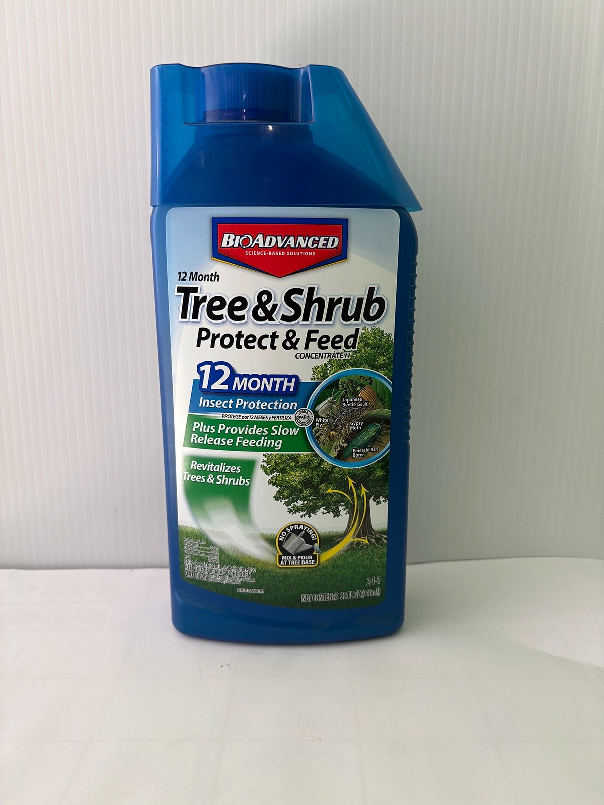 El producto BioAdvanced 12 Month Tree & Shrub Protect & Feed Concentrate sirve para proteger y nutrir árboles y arbustos.