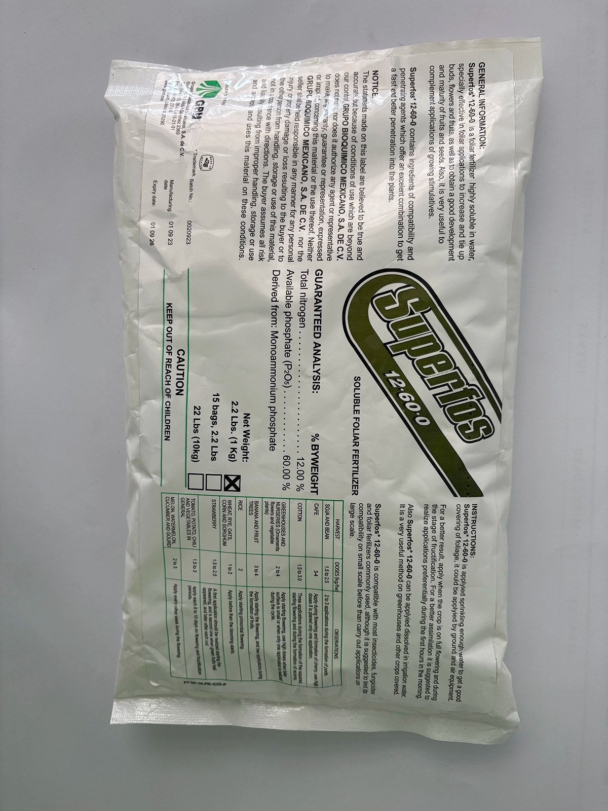 Fertilizante foliar soluble que se utiliza principalmente para promover la floración, el amarre de flores y frutos, y el desarrollo de frutos y semillas en las plantas.